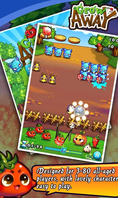 An action-packed game of good food versus bad diet, featuring fast, intense gameplay as you repel the ravenous monsters using your powerful veggie catapult. It’s eat or be eaten in Grow Away!