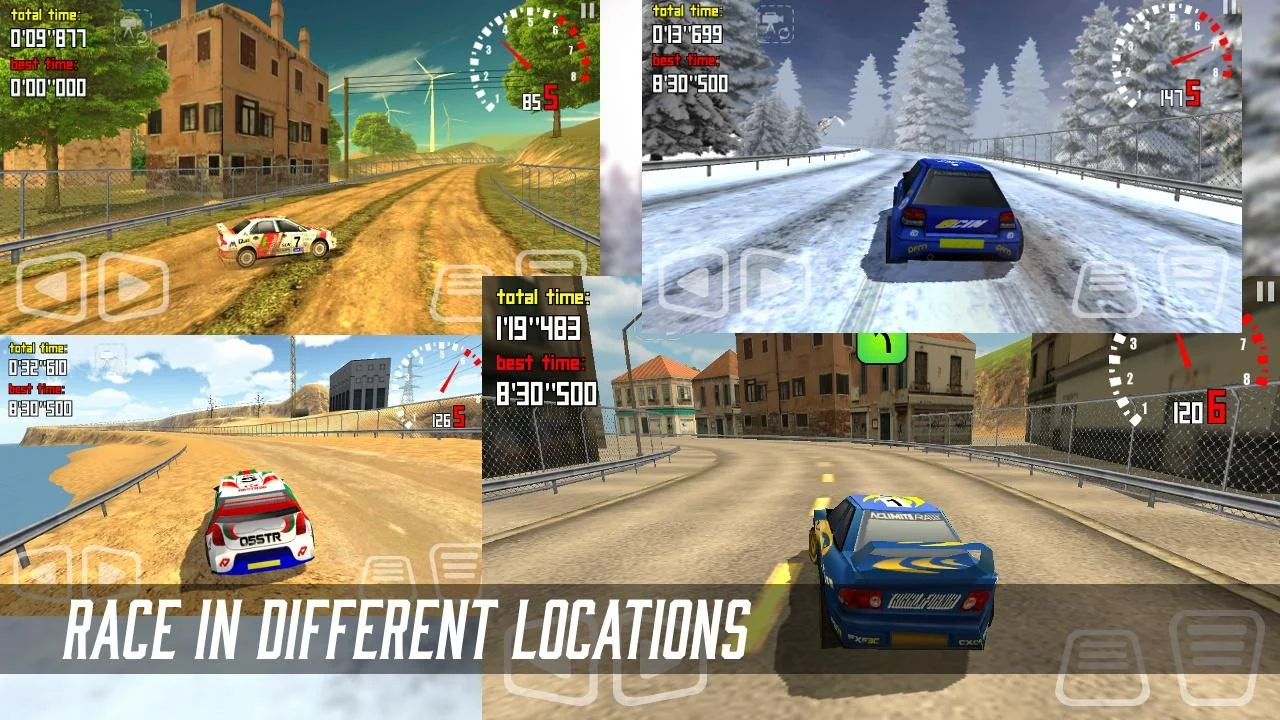 Drive through dirt, tarmac or snow. Chalenge yourself against the clock in Time Trial mode and unlock new cars and stages.